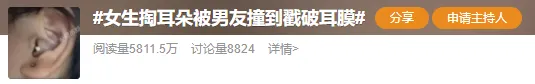 #女生掏耳朵被男友撞到戳破耳膜#
